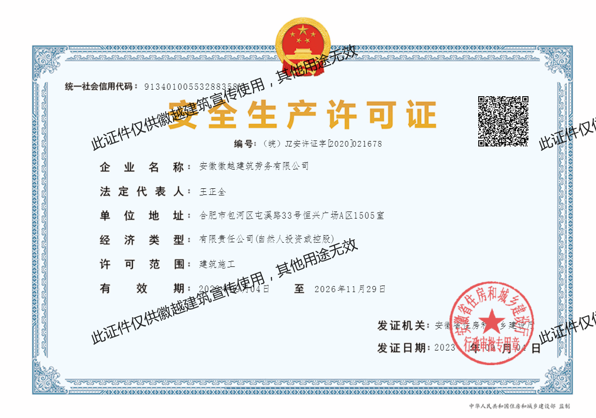 ·公司名稱:安徽徽越建筑勞務有限公司